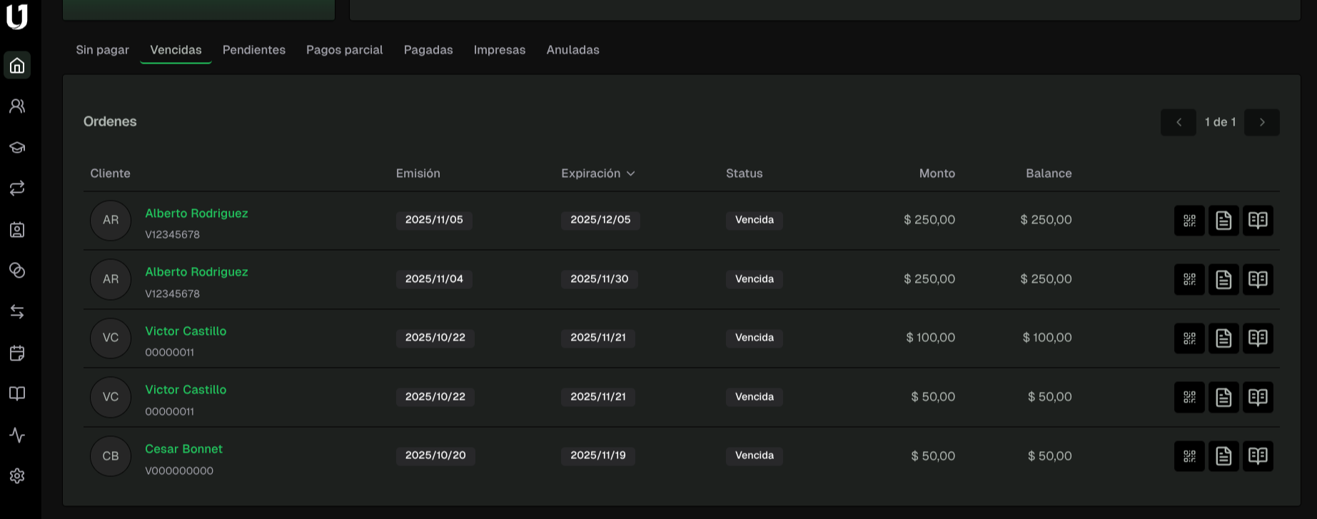 Son órdenes que ya pasaron su fecha límite. Algunas instituciones permiten pagarlas después del vencimiento, pero esto depende de las políticas de cada escuela o colegio.