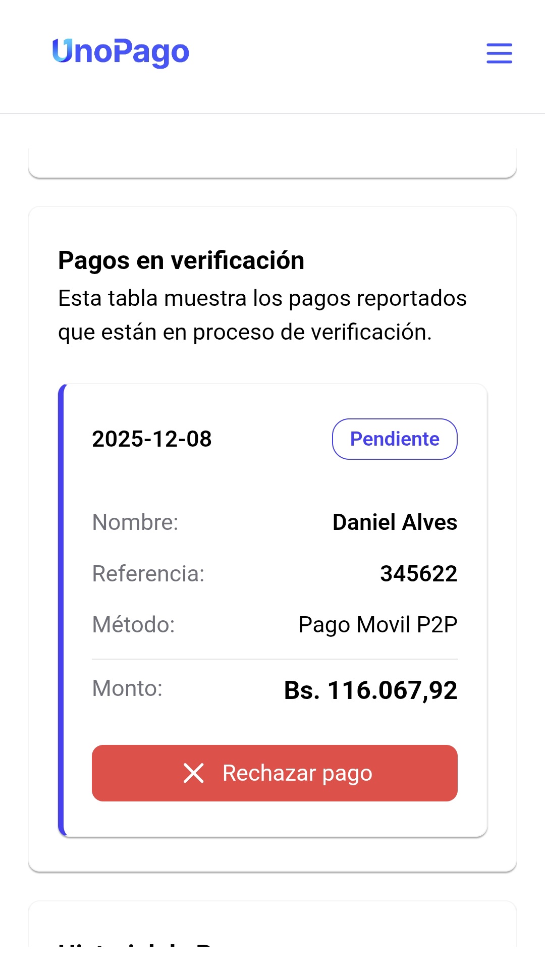 Los pagos en verificación son aquellos que ya reportaste o realizaste, pero que aún están siendo revisados por el personal de la institución.